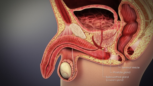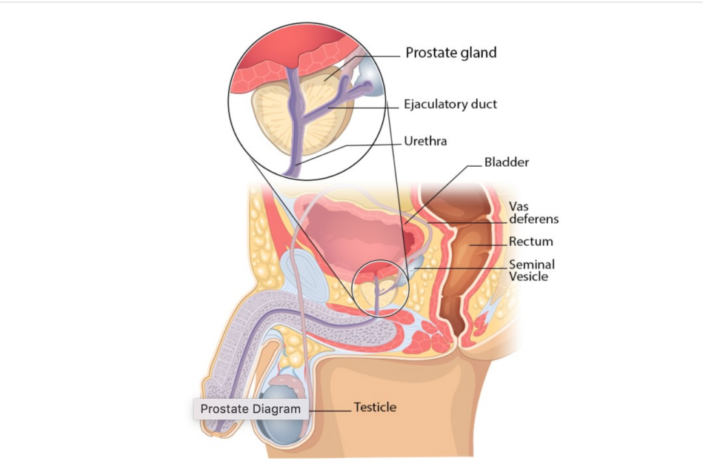 Prostate cancer is one of the most common cancers in men. The prostate is an organ only in men that sits below the bladder. It is part of the reproduction system. It may also affect the way men urinate. Cancer occurs when there is abnormal cell growth within the prostate. It may or may not cause symptoms. Symptoms, if present, may include blood in urine, difficulty urinating, pain in pelvis or bones, and weight loss.